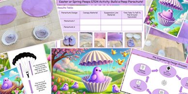 Building a Peep Parachute is a super fun and engaging science experiment, perfect for an Easter or Spring STEM Activity. Your students will work together to build two separate parachutes for their Peeps, and find out which works best. The activity is presented on attractive Google Slides with step by step instructions and photos.